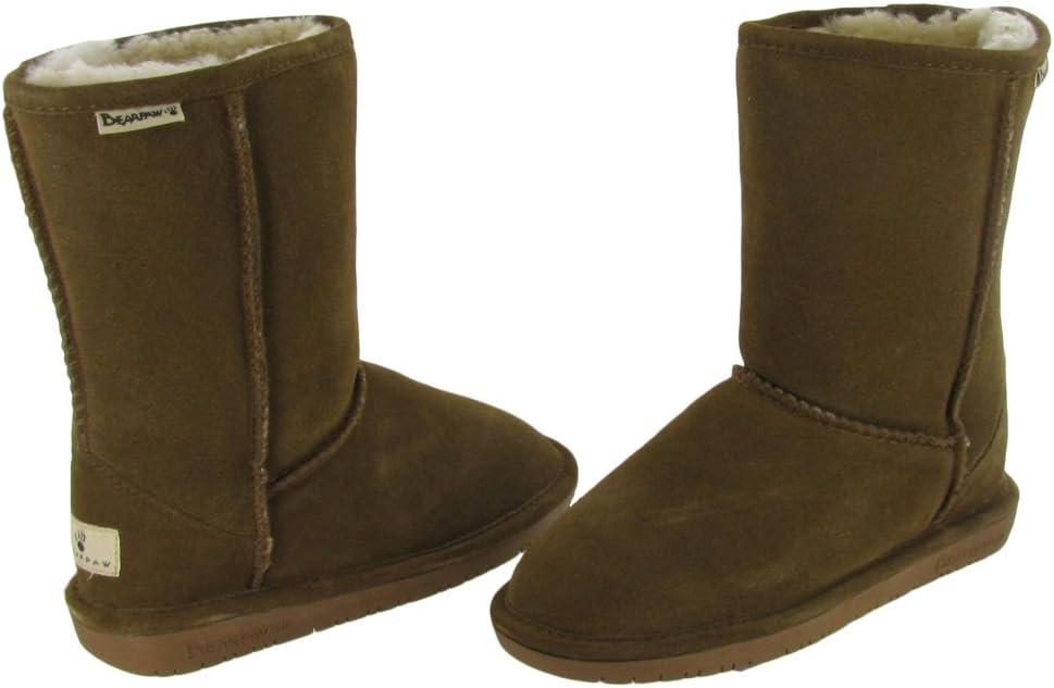 BEARPAW Emma Short Women's Classic Winter Slip On Boots, Lightweight Suede Boots, Multiple Colors(Hickory/Champagne)