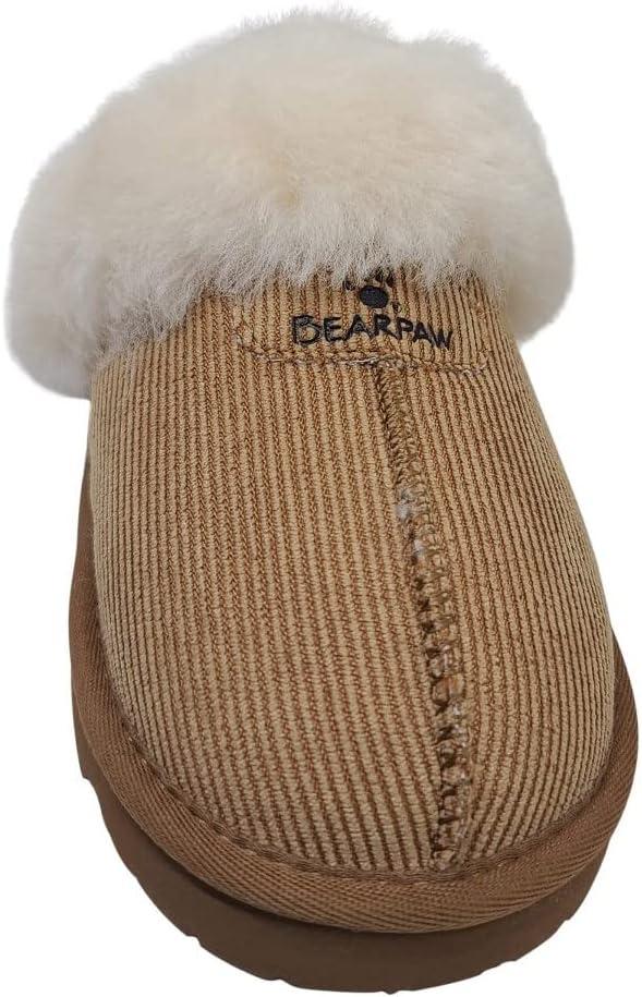 The Bearpaw Loki II 2 Women's Sheepskin Slippers are the perfect blend of comfort, style, and warmth. With a soft sheepskin lining and a durable corduroy exterior, these slippers keep your feet cozy while offering a chic, casual look. The lightweight outsole provides flexibility, making them ideal for indoor lounging or quick outdoor trips.