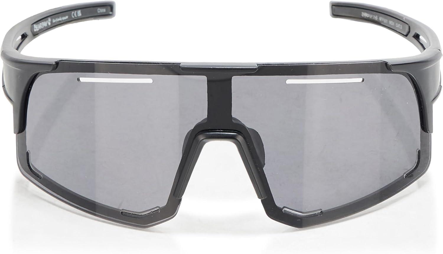 The Bearpaw men's backframe sport mirrored shield sunglasses offer a distinctive and performance-driven design. The unique backframe construction ensures a snug, reliable fit, while the vibrant mirrored shield lens provides 100% UV protection. Crafted from eco-friendly plastic, these sunglasses are a testament to innovative style and environmental responsibility.
