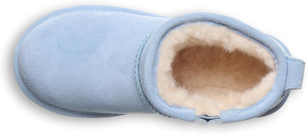 BEARPAW Retro Shorty Youth Boots | 3” Suede Slip-On | Wool Blend Lining | Indoor & Outdoor Winter Boots for Kids(Blissful Blue)