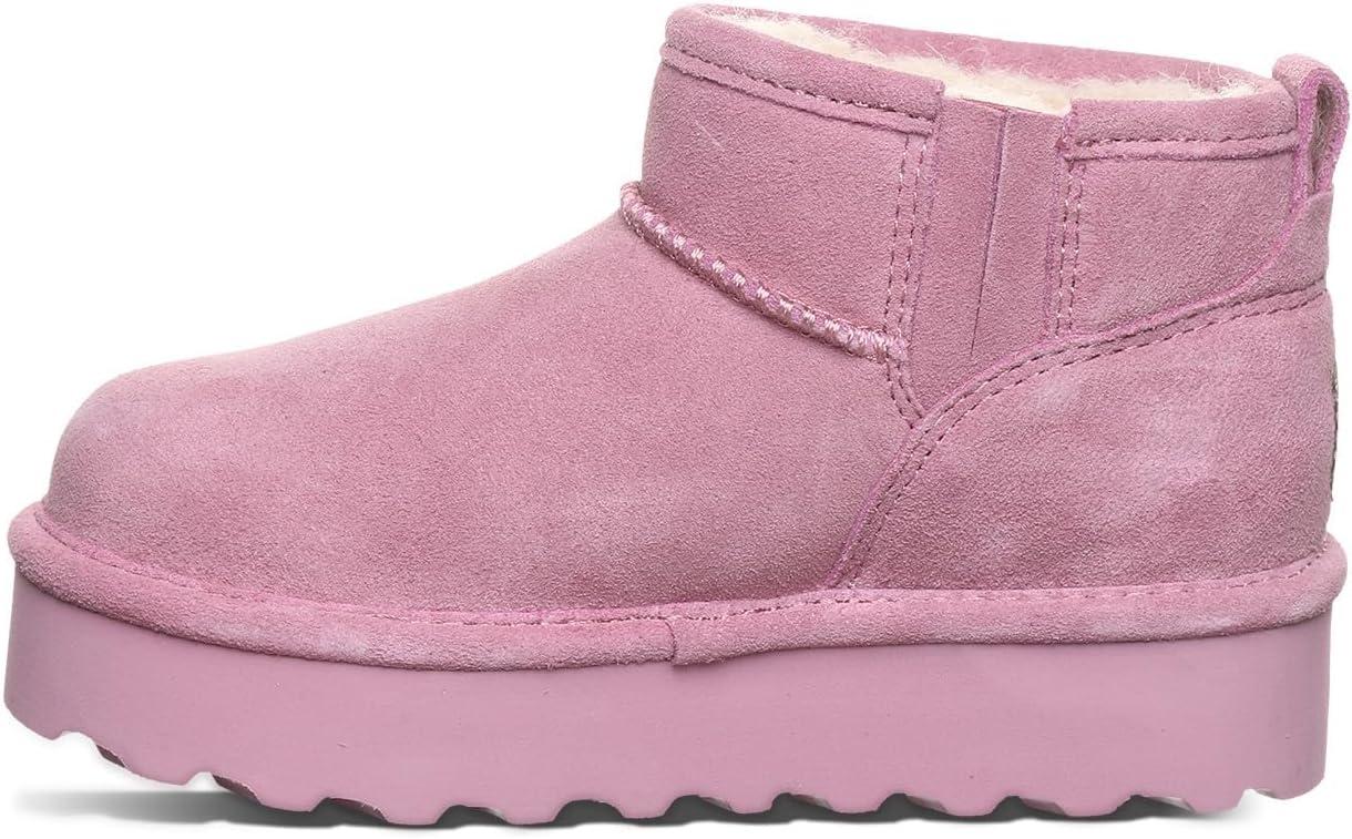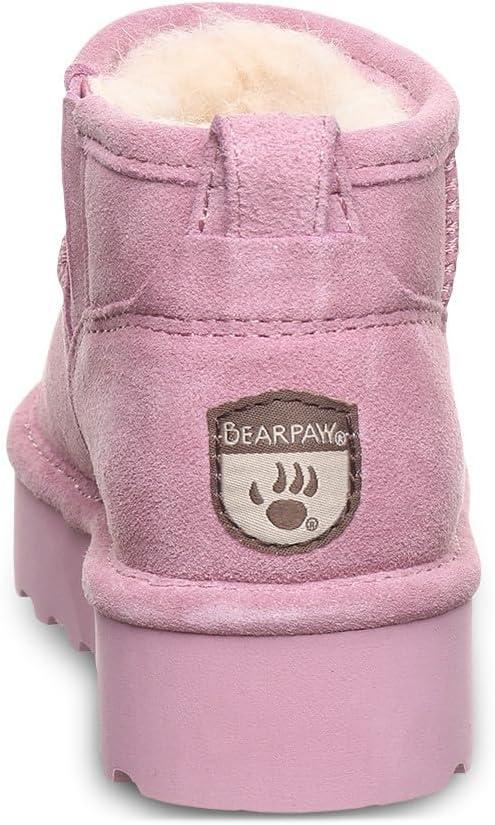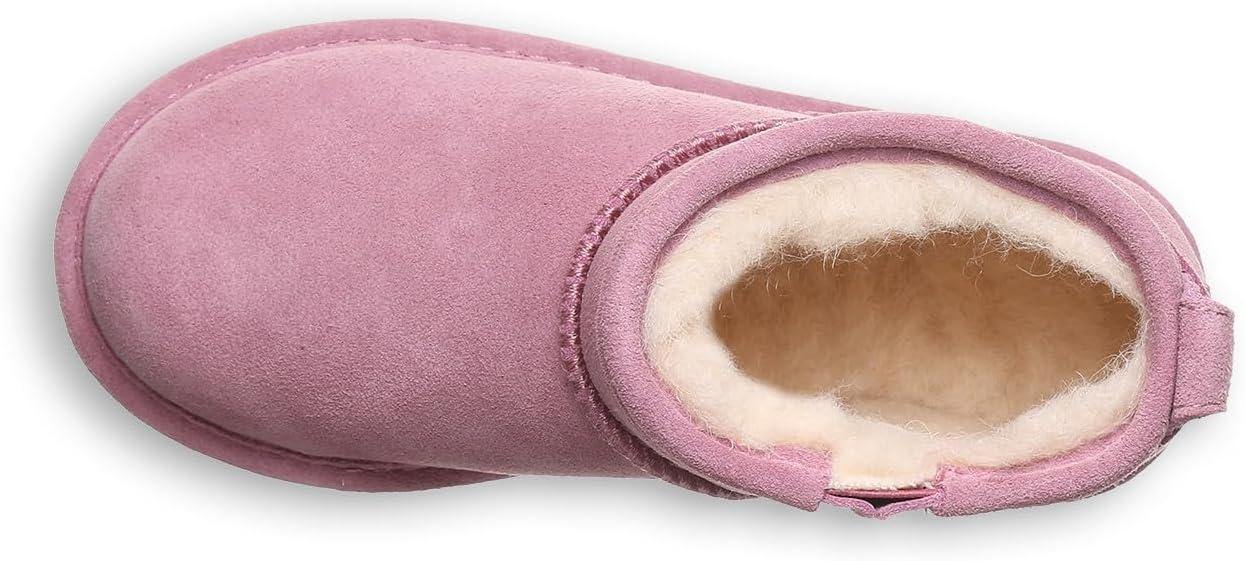 BEARPAW Retro Shorty Youth Boots | 3” Suede Slip-On | Wool Blend Lining | Indoor & Outdoor Winter Boots for Kids(Dusky Orchid)