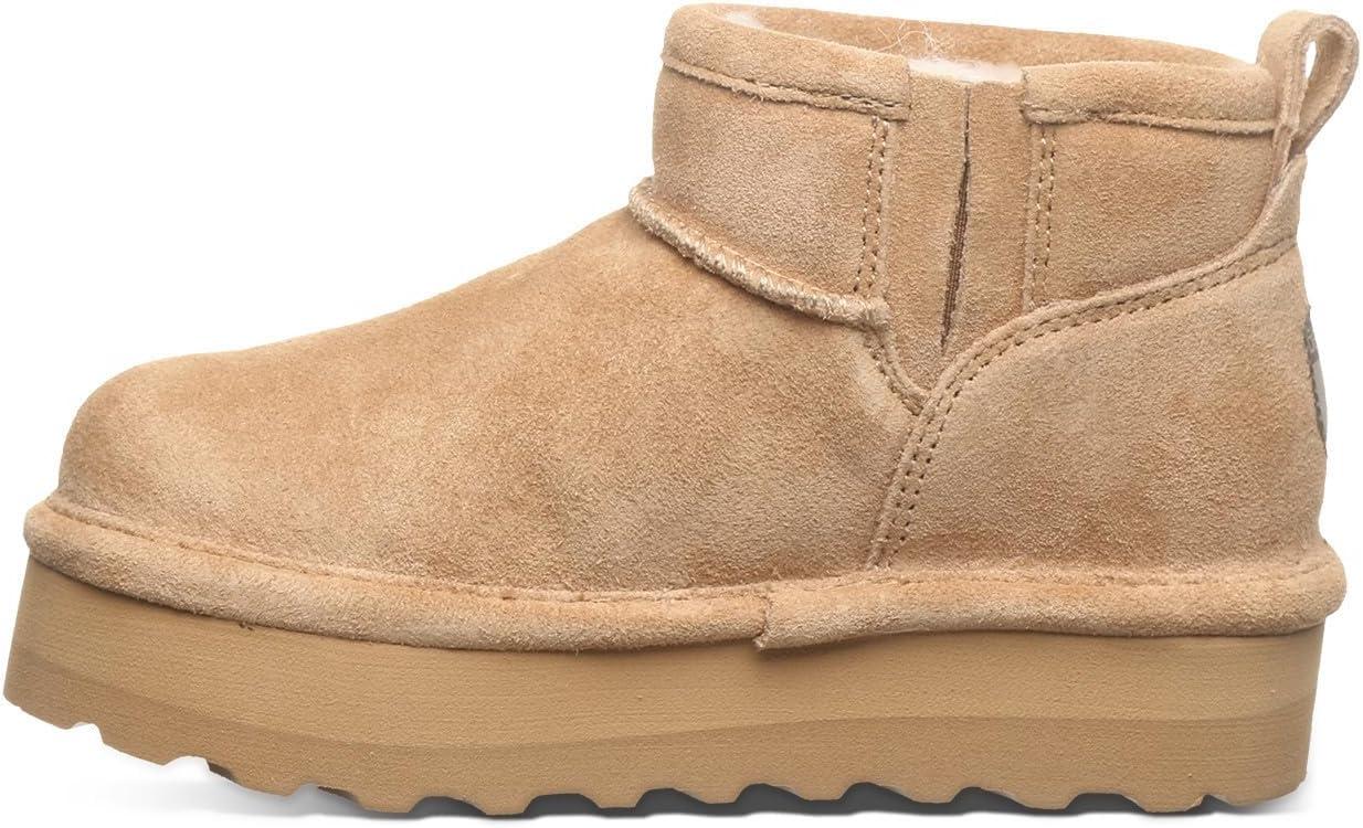 BEARPAW Retro Shorty Youth Boots | 3” Suede Slip-On | Wool Blend Lining | Indoor & Outdoor Winter Boots for Kids(Mushroom)