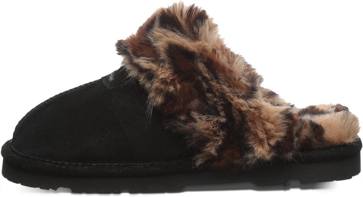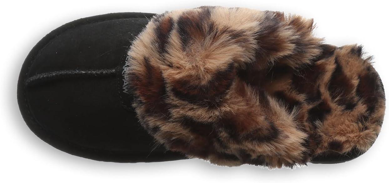 BEARPAW Women’s Loki Slipper(Black/Leopard Fur)