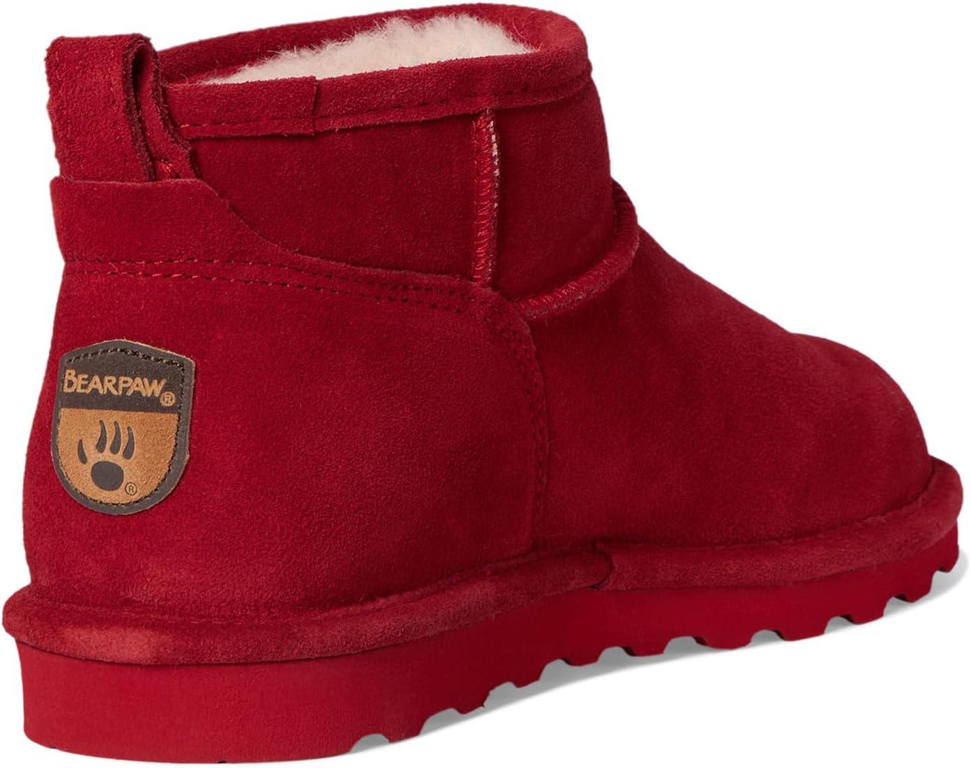 BEARPAW Women's Shorty Multiple Colors | Women's Ankle Boot | Women's Slip On Boot | Comfortable Winter Boot(Red Dahlia)