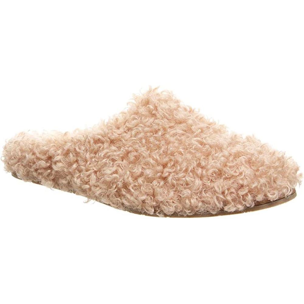 Plush curly faux slide with wool blend lining and sheepskin footbed.